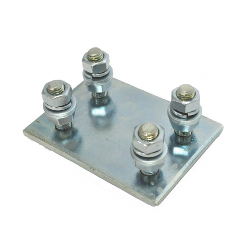 Готовые площадки со шпильками под роликовые опоры для откатных ворот. Площадки привариваются к фундаменту для откатных ворот, а сами ролики для откатных ворот крепятся к площадке при помощи шпилек и гаек. Это немного дороже, чем приварить опоры непосредственно к швеллеру, но избавляет Вас от ненужной возни и затрат времени, т.к. добиться точного выставления по одной прямой роликовых опор (если ролики будут стоять не по прямой, то будут сильно изнашиваться) без регулировочных подставок очень сложно.